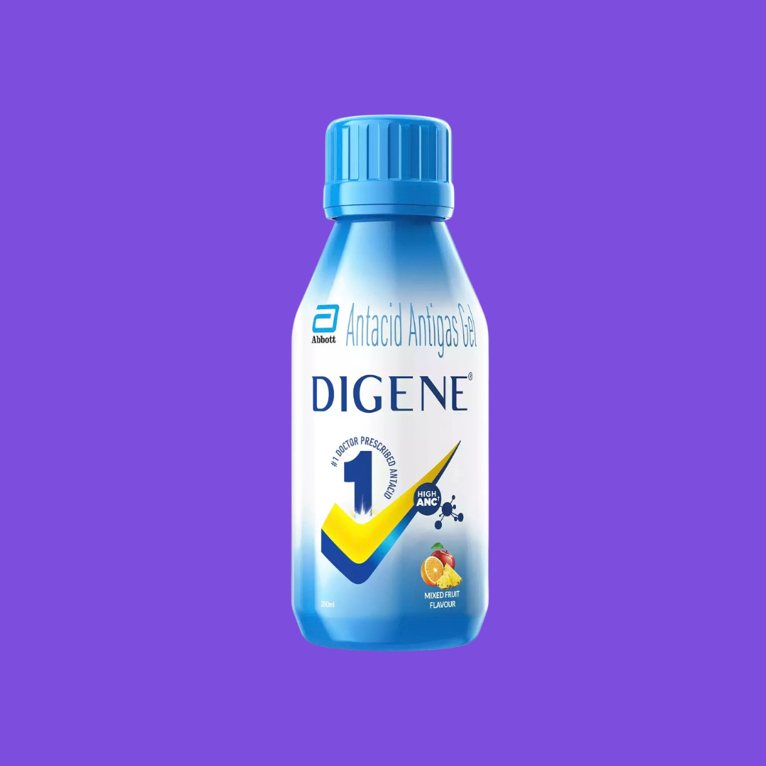Digene Gel contains Magnesium Hydroxide and Aluminum Hydroxide that provide rapid relief from acidity, heartburn, and gas. It neutralizes excess stomach acid and forms a protective layer on the stomach lining. The mint flavor provides instant cooling sensation and freshness. Relief starts within 5 minutes.